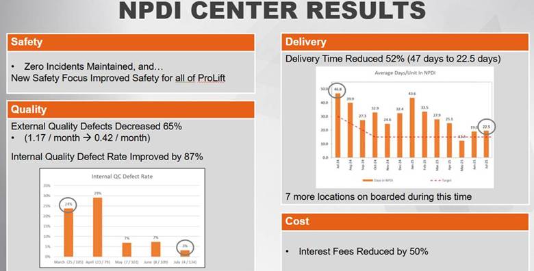 The Toyota Lean Management Team has been working closely with ProLift’s PDI Center in Seymour, IN, in 2025. The goal is to build a daily management and Hoshin Kanri board that visualizes performance and supports problem-solving activities. The results of this activity were shared in detail during the “Kaizen Into Action” Toyota Week presentation, so we hope you had the opportunity to see the excellent work done by the ProLift team.